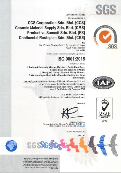 The Group was first established via the setup of a trading company named Continental Ceramic Services Sdn Bhd (now known as CCS Corporation Sdn Bhd); a private company limited by shares which was incorporated on 29 October 1984 under the Companies Act 1965. From a small trading company of ceramic pigment, chemicals and ceramic materials in 1984, the Group has since diversified into mining, mineral processing, mould & engineering as well as bulk handling & transport.